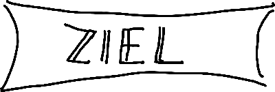 - Ein um 90° gedrehtes sehr lang gezogenes C wird unten gezeichnet (Spitzen nach unten).